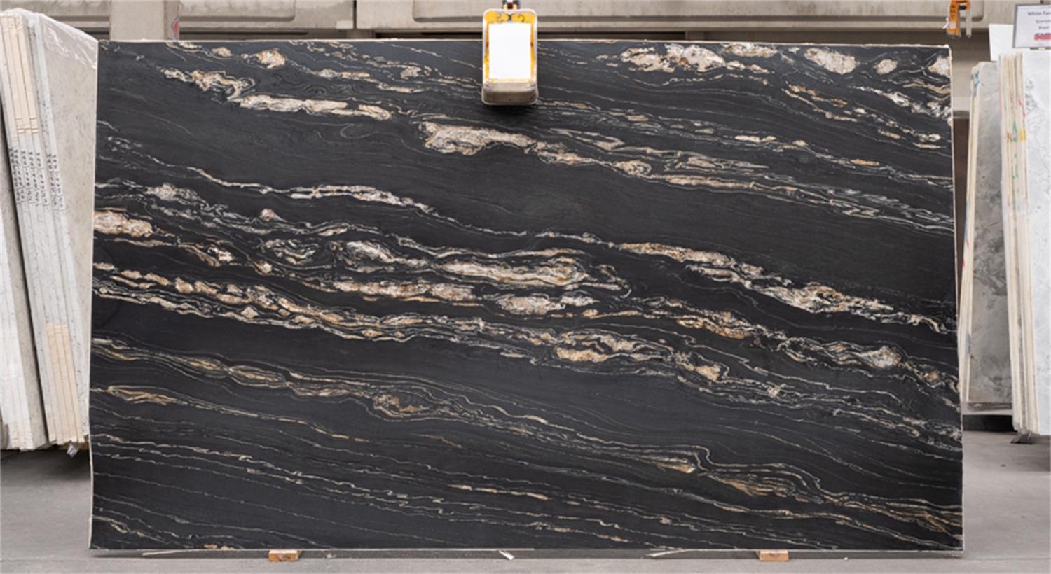 Diepe donkere tinten blijven behouden, maar de aders komen iets subtieler naar voren. Het oppervlak heeft een lichte structuur, wat het materiaal extra karakter geeft. Geschikt voor keukens, badkamers of toepassingen waar uitstraling telt, zonder dat het te aanwezig wordt.